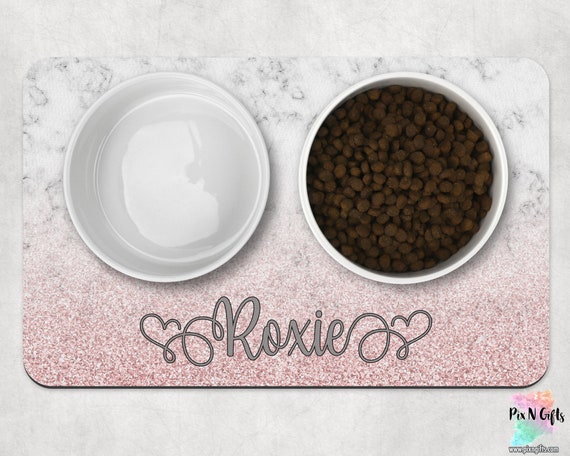 Grey Marble Pink Glitter Dog Mat Marble Personalized Dog Etsy
